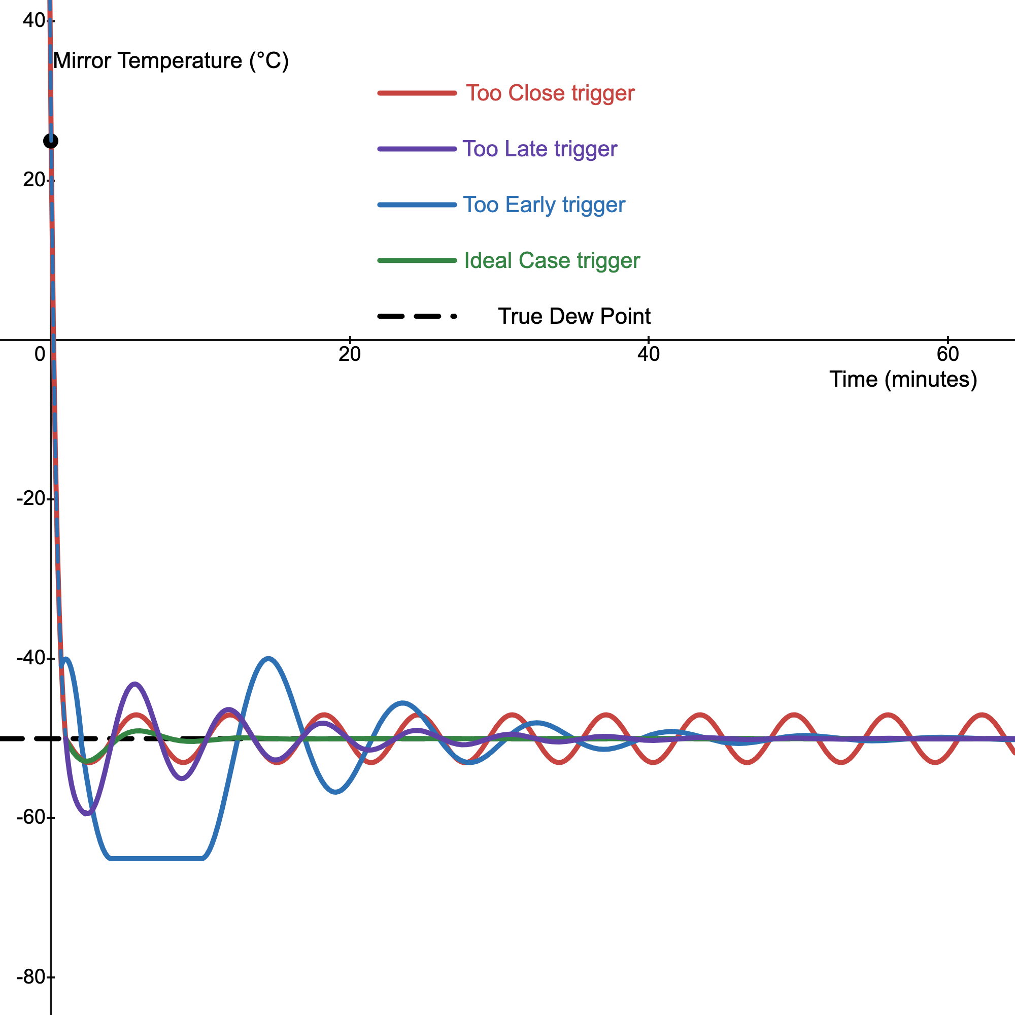The stabilization behavior of the instrument depends strongly on this temperature difference. Conceptually, three trigger regions may be considered: